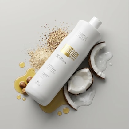 A Fashion Gold é reconhecida por ser a primeira escova progressiva sem formol do mundo, desenvolvida para alinhar os fios, reduzir volume e controlar o frizz sem agredir a estrutura capilar.