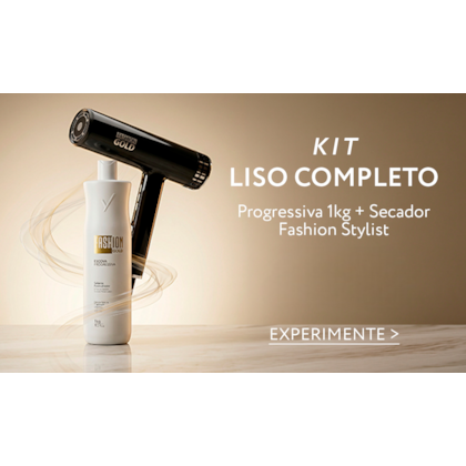 O Kit Fashion Gold reúne a consagrada Escova Progressiva Fashion Gold 1kg, reconhecida como a primeira progressiva sem formol, com o Secador Stylist Essence Air, unindo tecnologia e luxo para um resultado impecável do início ao fim.